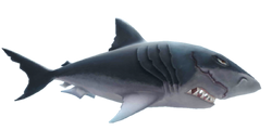 This Shark over here is the Megalodon. It lived in the prehistoric times. It was three times bigger than the Great White,and it was really big.Plus this shark comes in this game called Hungry Shark Evolution.